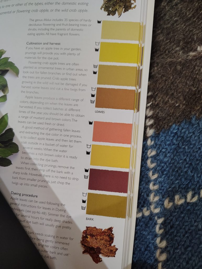 A couple months ago I mentioned that I’d started soaking some apple bark in preparation for using it in a dye bath, based on info in a new-to-me book, Wild Color by Jenny Dean.