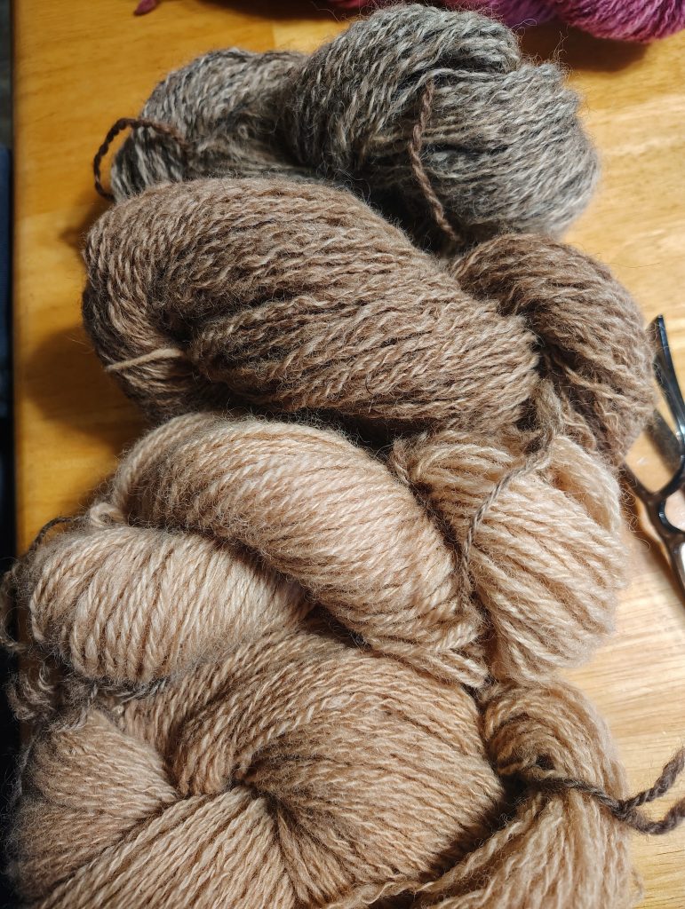 I decided to dye a variety of natural shades- bright white, creamy white, beige, and silvery gray (but didn’t get good “before” pictures, sorry). They weren’t mordanted, because the book indicated that it wasn’t necessary to mordant the goods for dyeing with apple bark, and I was hoping to get something like that rosy color (4th color swatch down in book photo above), which corresponded to the unmordanted sample.