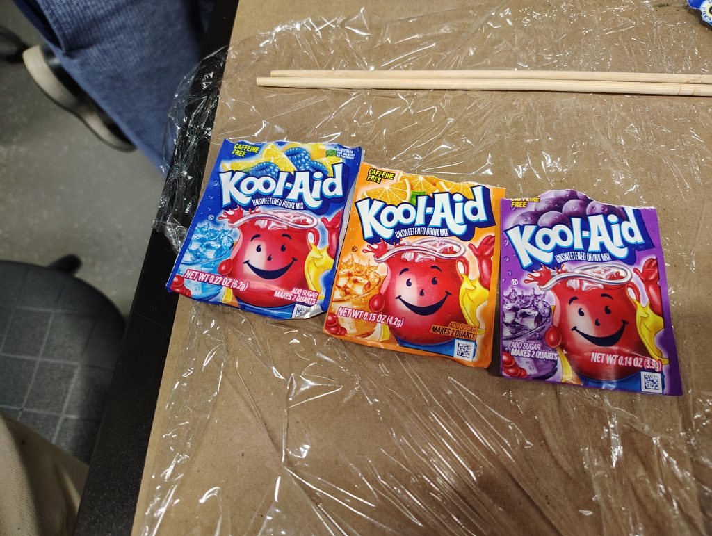 Well, I’m back from the 2026 Expo, and it seems like the KoolAid class was a success. Folks seemed to have a lot of fun coloring their wool, and two hours proved adequate to get everyone through the process. We had some particularly adventurous young students who hit upon a really nice deep forest green result by combining Blue Raspberry Lemonade, Grape, and Orange, so sharing that here for future reference